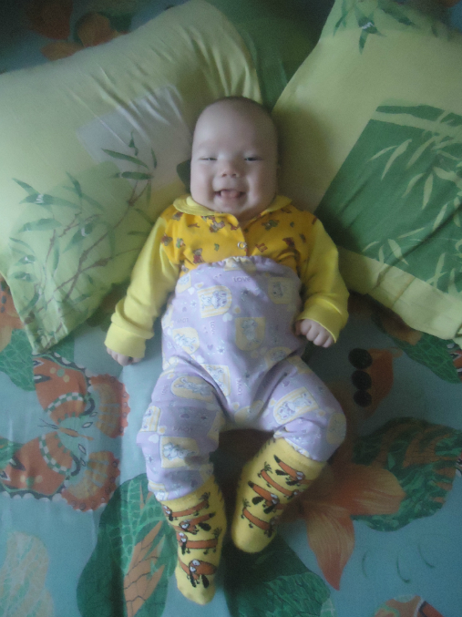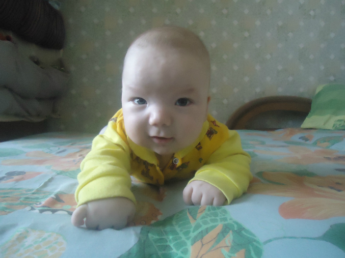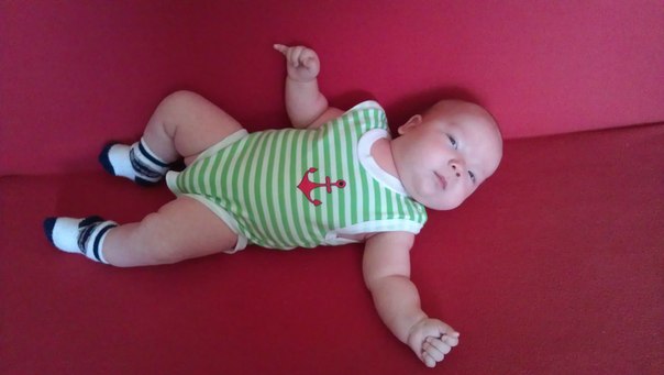 улыбаемся во весь рот, когда видит нас, сразу реагирует, агукаем как взросые, очень четко и звонко получается, даже какие то слоги, типо ма, или на,что иногда я путаю))) доча или сынок ???))) когда нахожусь в др.комнате))))