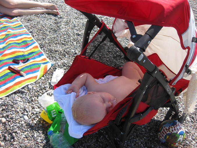 На машине Никуша ездил в автокресле из дома, в нем же кушал, сидел за ужином и обедом с нами в отеле. Там кстати все инострацы полюбили машу с медведем))) все норовили сзади Никуши подсесть, чтобы тоже смотреть)))))) Брасли с собой еще трость, кам микро... конечно убили мы ее, но штука хорошая, везде сеточки, спать совершенно не жарко. А потом уже Никуша мог поспать и на шезлонге и на песочке на полотенчике)))))