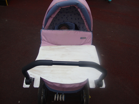 Вам бы что-то наподобие купить, можно б.у. чтоб дешевле и не заморачиваться с досочкой, главное чтоб к коляске подходило