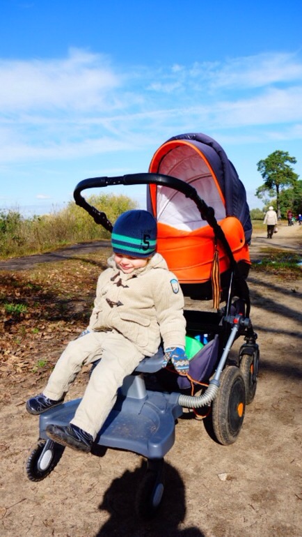 Сын осенью никак не хотел выходить без самоката и машинки каталки, он же не знал на чем выйдут его друзья. И мне легче было взять все, чем с ним ругаться. Так вот мы шли: люлька на ней висит сложенный самокат, я ее держу рукой, в которой уже есть каталка и в свободной руке сына. Мамочки во дворе мне сочувствовали)) а сейчас когда мы идем с подножкой все смотрят синтересом и почему тоне все догадывался, что коляске ребенок))