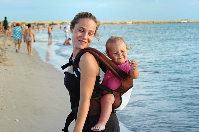 нет, не такой... щас попробую найти расцветку, я покупала давно, тогда всего 2 вида было бордовый и синий кажется... ща... вот нашла в инете: и вот на спине:Я лично на спине не носила, только спереди, мне так было удобно ребенок на виду и засовывать его спереди проще))) Но многие носят сзади без проблем. Единственное я думаю там же ремень будет по животу как раз, ну хоть и внизу., но все равно... будет ли удобно во время беременности носить??