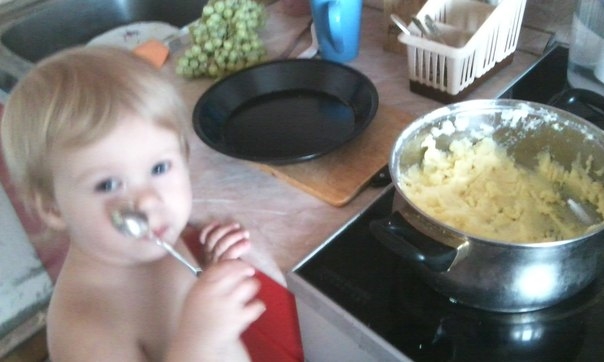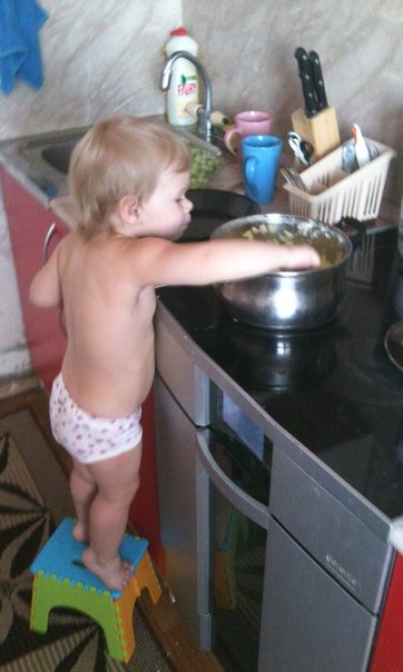 Наши детки (развитие, успехи, фото)Купила Саньке стульчик, что бы вставать на него, зубки там почистить, ручки помыть, иногда она на него встает когда я готовлю-помогает. Вообще она с этим стулом только не спит, и не дай Бог к нему прикоснется Сережка...крик на все 17 этажей...Так вот, сижу сегодня в компе, дети игрались, Потом Сашка ушла куда то, Сережка за ней.....тишина....пойду думаю посмотрю в чем дело. И вижу вот такую вот картину