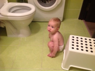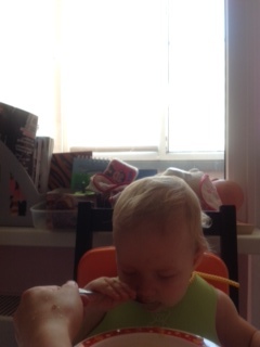 Завтракаем. И начинается день. Папа собирается на работу, я мою посуду с посильной Жениной помощью, Маня развлекается.