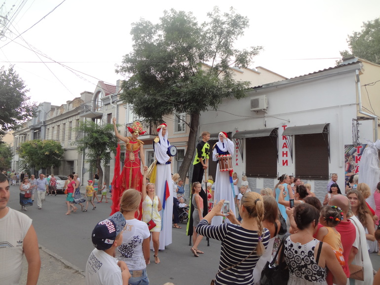 А каждую летнюю пятницу на улице Караимской проводятся особые фестивали разных национальных культур-прямо на улице проходят ремесленные мастер-классы, выступают фольклорные коллективы и часто можно увидеть артистов местного театра на ходулях: