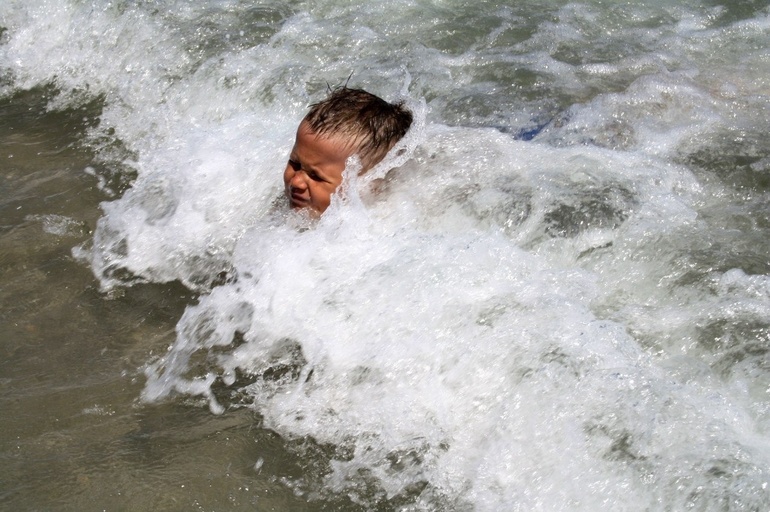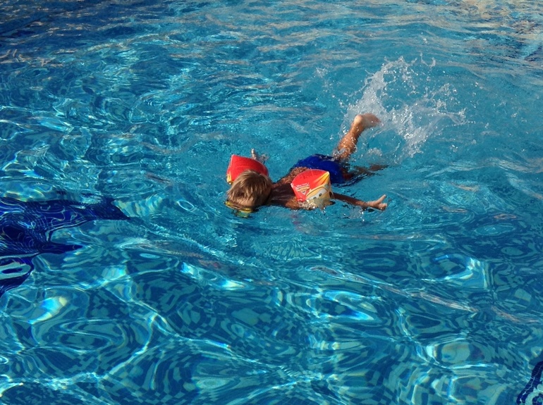Сначала купались в маленьком бассейне, но через пару недель он уже был не нужен)))
