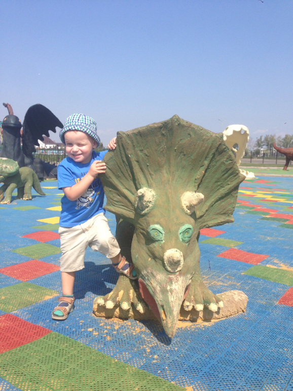 Фото с динозаврами, это мы ездили в "национальный конный парк русь" в деревне орлово и там был контактный зоопарк, лошадки, площадка, батуты
