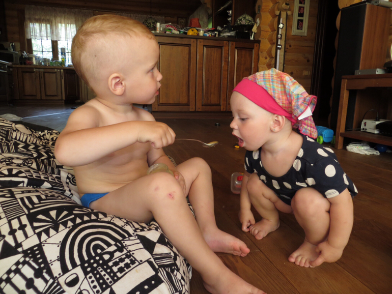 прикольные)))) мой тоже любит сестренку кормить))) а если ей не нравится,она визжит,а он ее бьет,замкнутый круг)