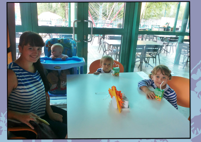 тоеж в кафешке. Там же и детский развлекательный центр, где они бегали.