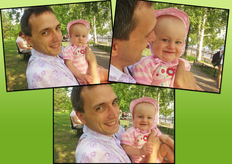 В кафешке попросила человека нас щёлкнуть. Удобно, что сейчас во многих кафе есть детские стульчики:)