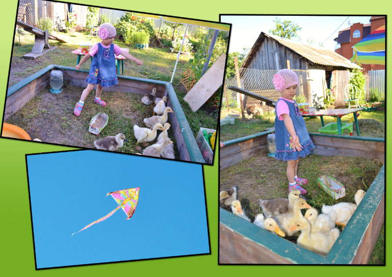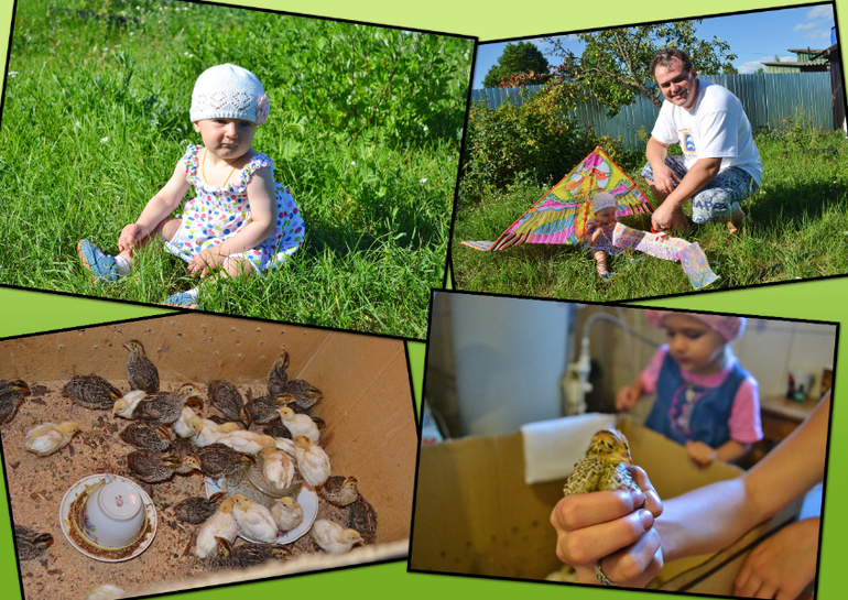 Запускали воздушного змея мы. Смотрели на вылупившихся перепелят. Тут им уже пара недель.