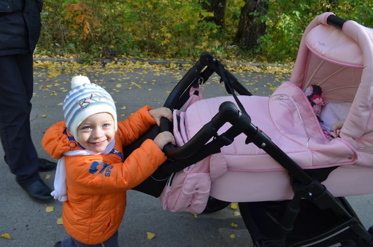 спасибо. да, наше первое платье))))) с коляской нормально ходим, либо вот так катит, либо за ручку рядом идем...