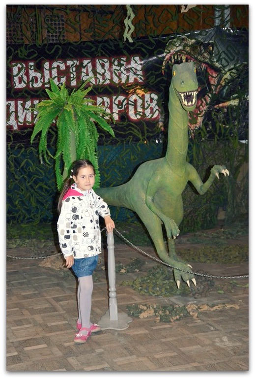Взрослых, конечно, эта выставка из восьми динозавров почти в натуральную величину не сильно впечатлила. Даже жалко было потраченных ста тысяч на билет, но детям понравилось. Люба сразу выбрала «самого красивого» динозавра.