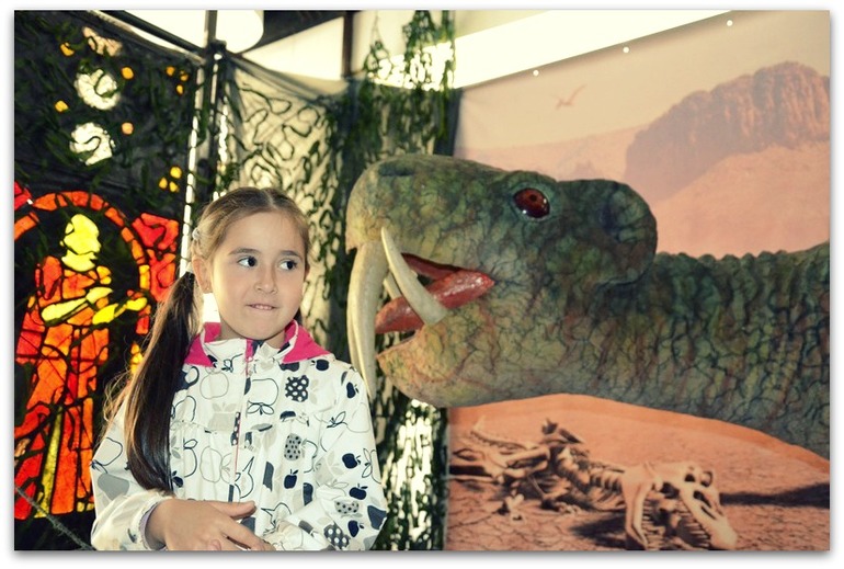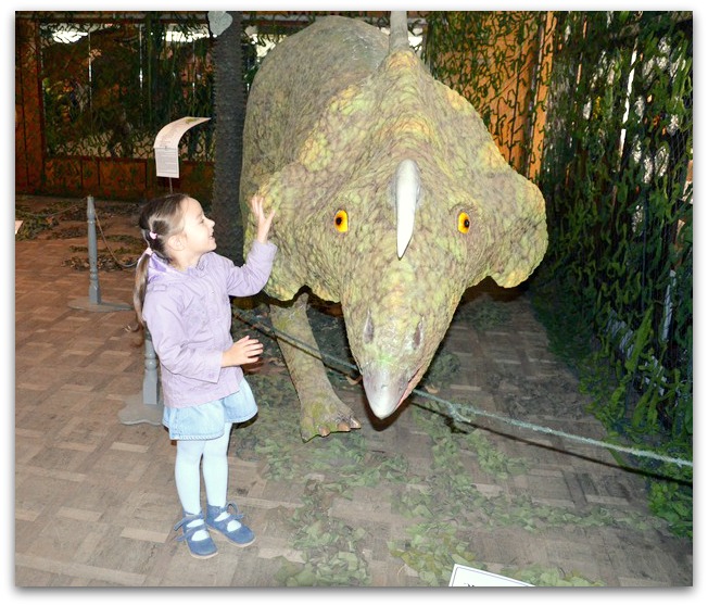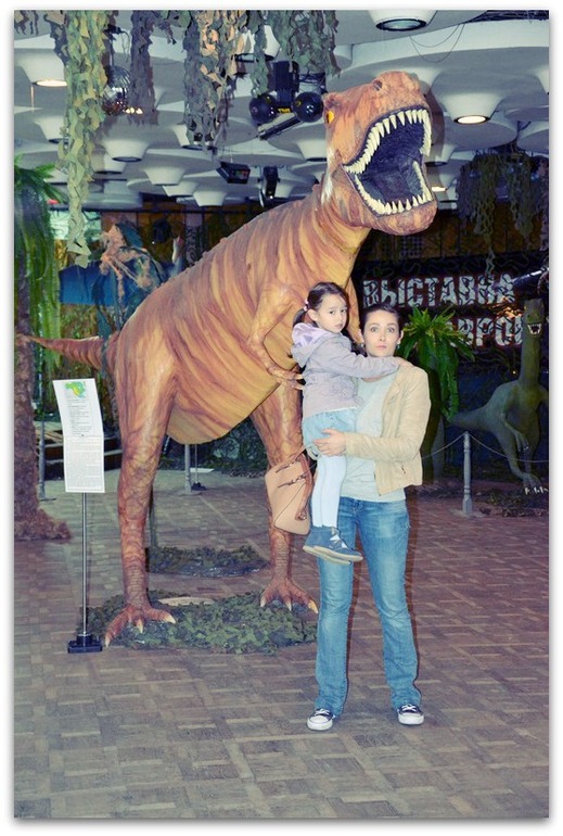 А в субботу ради такого случая мы двинулись на «выставку» динозавров в местный ДК Профсоюзов. Ее я заприметила еще в Одноклассниках, просмотрев кучу снимков всех наших знакомых детей рядом с под теранозавром.