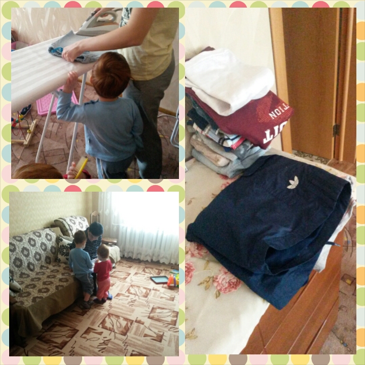 11:22 Я уже глажу белье. Приходит свекровь, чтобы посидеть с детьми, пока я пойду на маникюр. Дети уходят с бабушкой в зал. Решают тесты. Вчера пришла посылка с Озона, купила Демиду 2 книжечки с тестами для нашего возраста. Вот они и сидели разбирали их. Я продолжаю гладить.