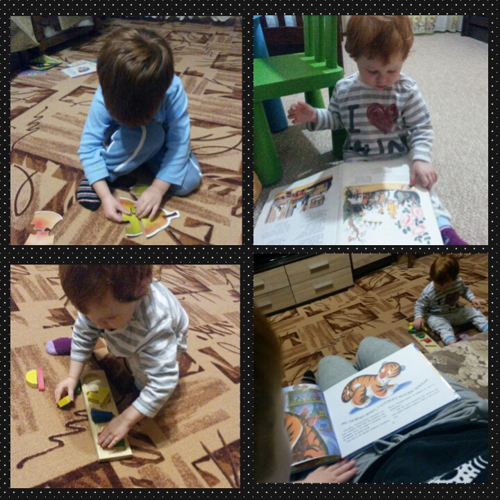 20:19 Надоело читать, точнее слушать и дети разбежались. Виолетта пошла в комнату разглядывать книжку, а Демид попросил достать макси-пазлы. Сегодня сын молодец, старался как никогда. Потом опять все собрались в зале. Я читала Демиду, а Виолетта собирала «деревяшки». Потом папа позвал всех на гранат. Я не пошла, тк уже ничего не хотела, просто легла на диван, закрыла глаза и попыталась ни о чем не думать. Я уже устала, сильно устала. Но на кухню всё равно пришлось идти, чтобы всё убрать со стола. Фотографировать уже ничего не хотелось.