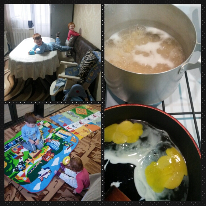 15:30 Окончательно проснулась Виолетта. Далее идут игры с Демидом. Я в это время готовлю детям полдник и нам со свекровью поесть.