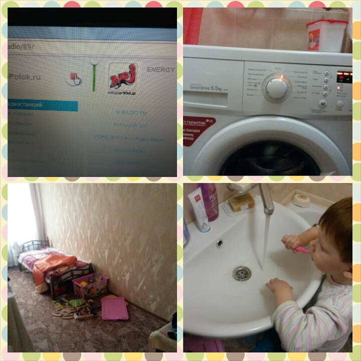8:20 Я пришла на кухню, чтобы приготовить завтрак детям и сама заодно перекусить. Чтобы настроение поднять я включаю обычно радио. Демид увязался за мной. Мы идем дружно умываться и закидывать вещи стираться. Также заглядываю в другую комнату, там бардак со вчерашнего дня, не похоже на меня.