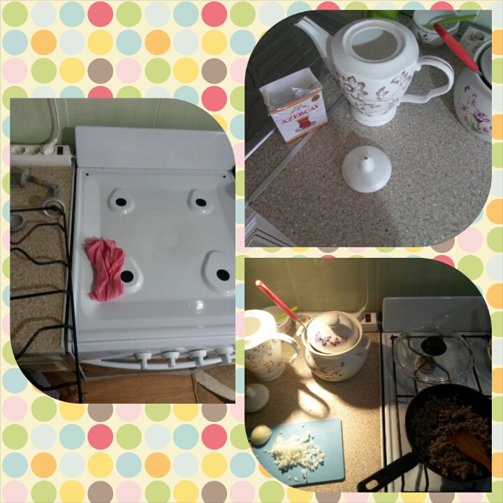 12:38 Я обжарила фарш для будущего ужина, заварила свежий чай, помыла плиту.