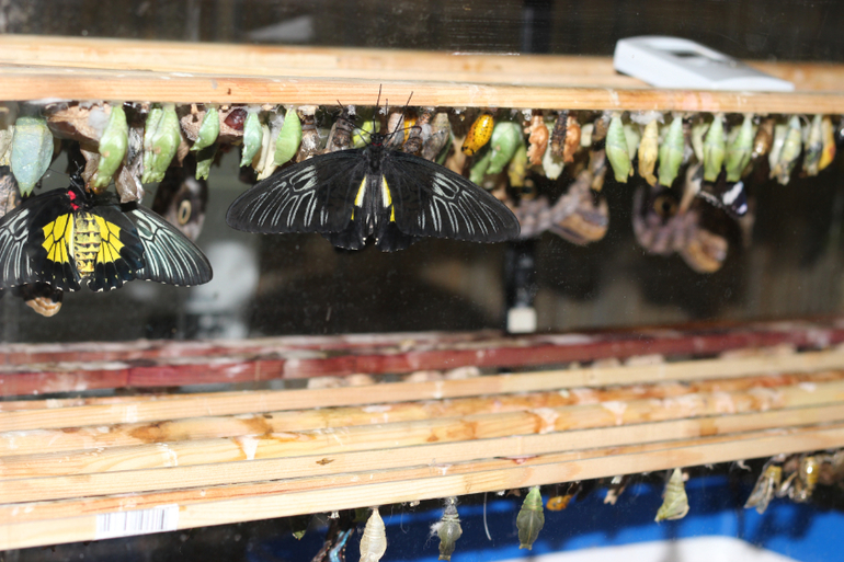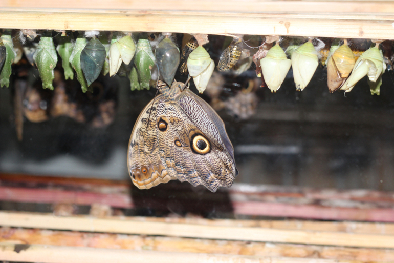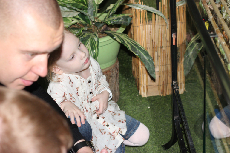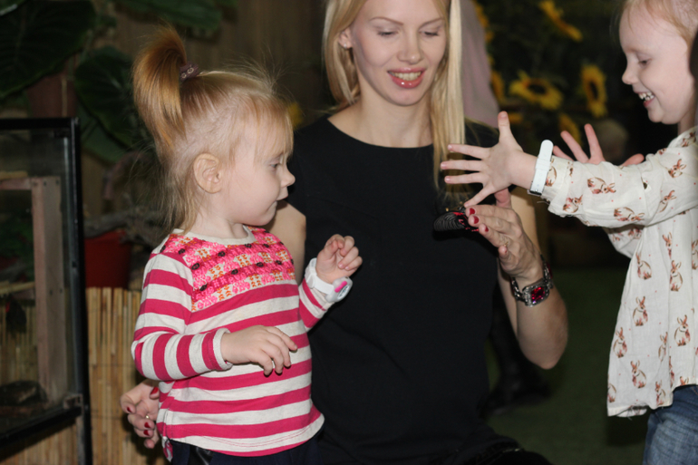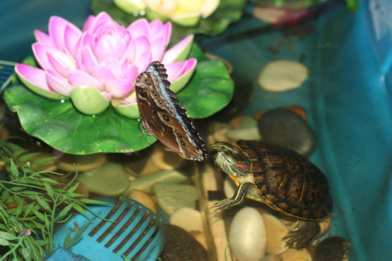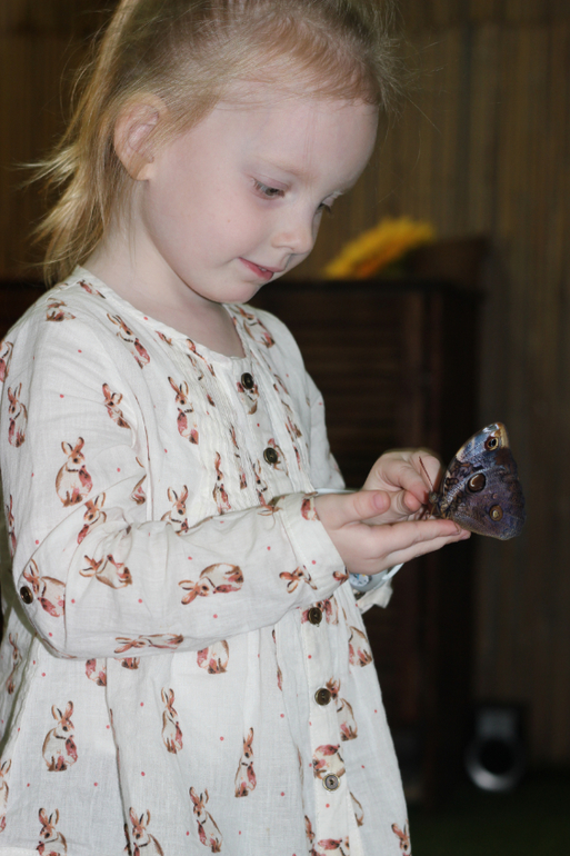Так приятно было смотреть на эти детские искренние, не поддельные и яркие эмоции, что мой сентиментально-беременный мозг плавился от счастья и удовлетворения от того, что это твой ребенок, что он вот такой, любимый, чистый и неповторимый!!! Ну да ладно), перейдем к выставке;) Сначала нам показалось, что комнатка слишком мала, чтобы получить удовлетворение от увиденного, плюс там было жарковато, но стояли термометры и приборы, измеряющие влажность, поэтому, думаю, что все ок!, в смысле для животных, птиц и насекомых) Как я уже сказала выше, мы в первые увидели, как рождаются бабочки из куколок. В течении нескольких минут бабочки совсем беспомощны, расправляют крылышки, можно сажать их к себе на ручки. Затем начинаются первые попытки полететь. Одна бабочка случайно попала в мини-бассейн, где жили черепашки, и решила попить, но за доли секунд черепаха потащила ее ко дню, но бабочка была спасена служащими выставки. Чудные птички чирикали над головой и была атмосфера уюта и удовлетворения! Далее, прошу под кат;) ОСТОРОЖНО!МНОГО ФОТО!