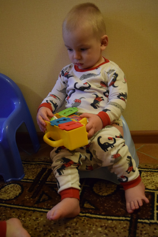 Потом усаживаю обоих на горшок, Сава не хочет сидеть, отвожу его и сажаю на унитаз, сидит))) Илье конечно же интересно чем мы там занимаемся приходит к нам![]()