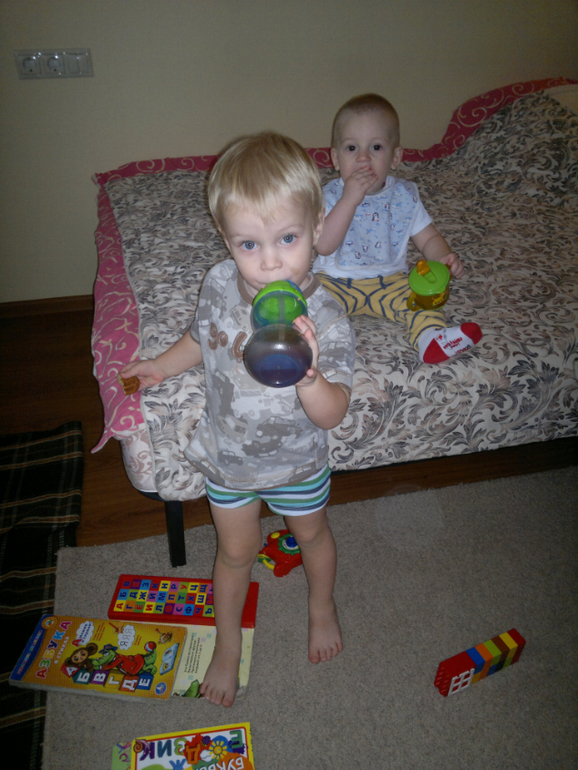 Докармливаю обоих одновременно, отмываю, Сава включает ноут, разрешаю ему немного посмотреть развивашки и идем укладываться спать. Три часа, дети уснули, Илья раньше минут на 20, Сава ближе к трем![]()