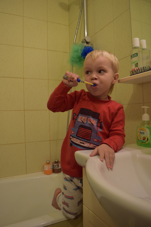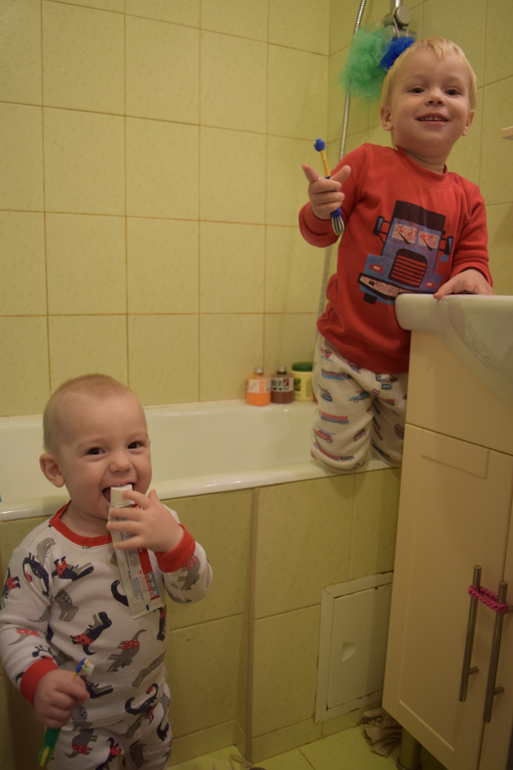Проснулись, как часто бывает, все одновременно, т.е. кто-то из детей первый проснулся и будит всех остальных, в этот раз это был Илья, повозились пообнимались с ним немного в нашей кровати и этим разбудили Саву, на часах 8 с копейками, встаем идем умываться и чистить зубы