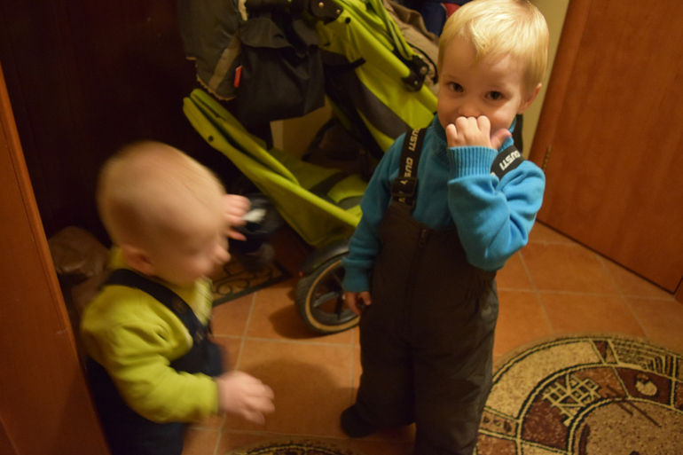 Время к пяти, идем будить Саву, небольшой перекус - у Савы кефир с печеньем, Илья раньше грыз морковку, огурец, выпил сок. Дети недолго играют и собираемся на улицу, это без комментариев и фото, мамы погодок меня поймут почему))) тут главное быстрей одеть сто одежек и не спарить детей, выпускаю их в приквартирный холл, сама быстро одеваю верхнюю одежду\обуваюсь и за ними, шапки\шарфы одеваем уже перед лифтом и в лифте.![]()