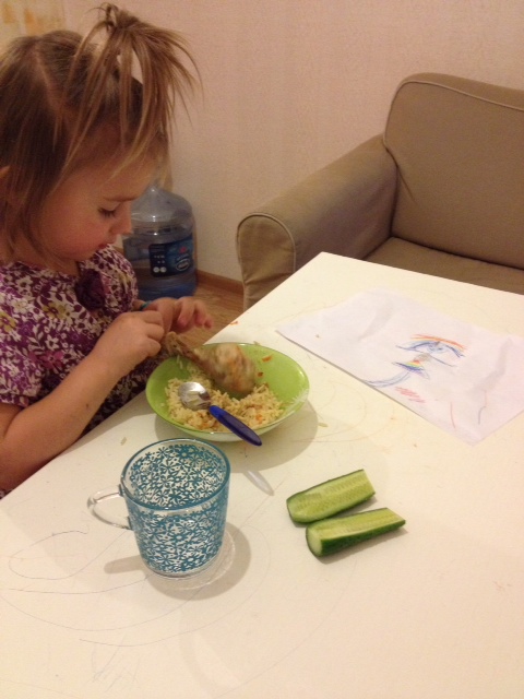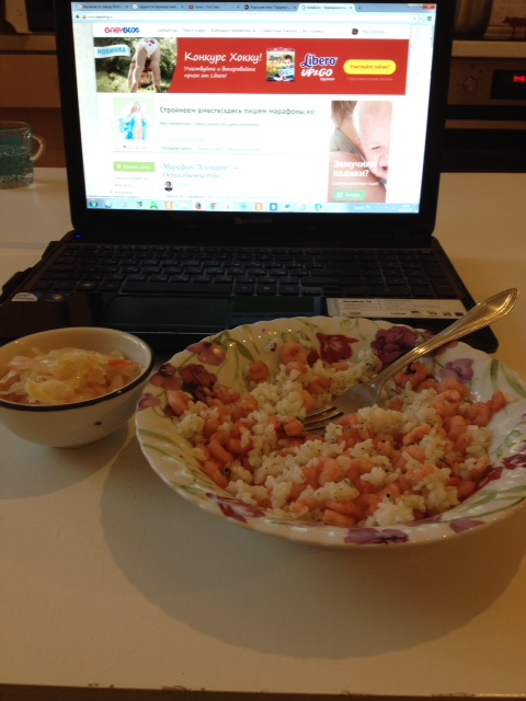14.15. Дети поели и убежали в детскую. Я доделала себе обед, открыла ноут, удобно расположилась и наконец-то пообедала.