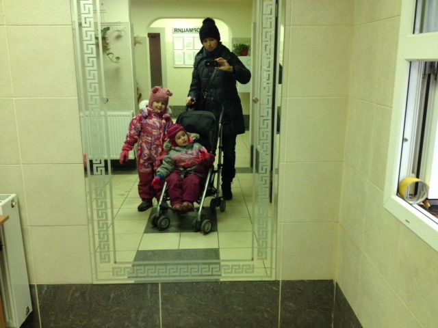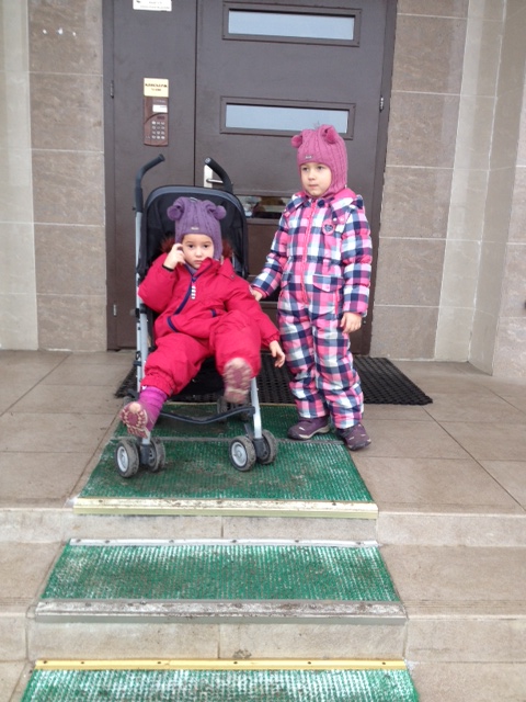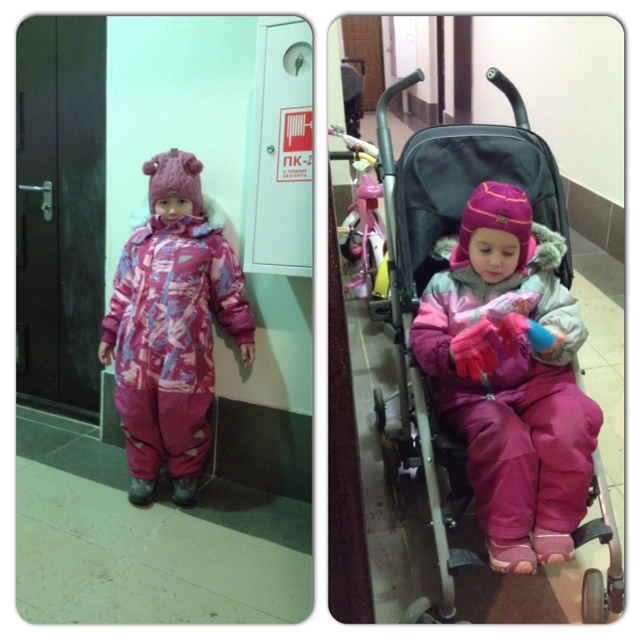 10.30. Выходим из дома. Да! Младшая до сих пор на коляске! И я не вижу ничего страшного в этом. Кстати полюбила она коляску в 2 года. До этого она жила в слинге на мне.