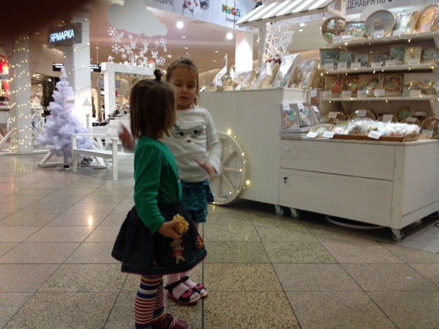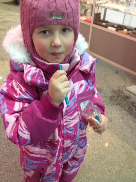 Кристина по дороге вылезает и коляски, бегает, потом опять садится. Пришли в магазин. Купила им жевательные конфетки. Покупаю иногда. Не очень это полезно конечно, но зато можно в магазине спокойно выбрать все, что нужно.