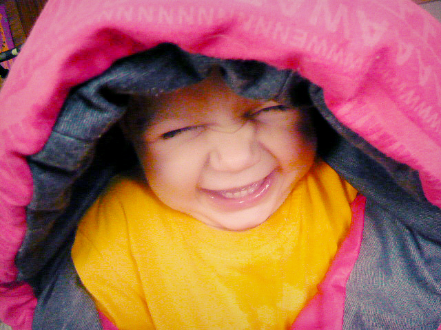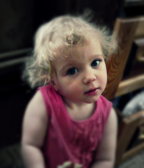Рада несмотря на свой маленький возраст-очень много уже знает. Спасибо вимбельбухи и папа! (он сказал, что это вообще отличные книги, значит ему тоже не скучно). Геометрические фигуры выучили уже давно. Играет на качельке, разломала печеньку и раскладывает на коленочки: "твапеция, тиугольник, цветочек получился!" Теперь учим цвета, пока безуспешно. Стихи тоже уже рассказывает: "Уванили мишку на пол, лапу... Хороший..." Ну и много разных в таком ключе. Да! Самое главное что говорит много и давно и по много. Ещё даже поёт! Я не заставляла и не настаивала. Не переживала уж точно, что не заговорит. (По её настырности можно было сразу понять, что молчание-не золото у неё.) Ещё она "умеет" считать: "Один...пять..." Повторяет за Дашенькой. Любит мастерить и разбирать. От кресла попробовать оторвать бортик и просунуть в дырку руку-это про неё. Ах! Да! И поковырять объектив у фотоаппарата! Там же окошечки закрываются и открываются. Отличный аппетит! А как она выпрашивает конфетку. Раньше она была у нас просто "туку". Понимали это только мы втроём, один папа был не в теме. Даже Дашенька подбегала и говорила "Рада туку хочет!" Ну понятно. да? А теперь Рада: "И я касетку! Выбею, Выбею! (Выберу) Ура!" И так наивно искренни, словно это равносильно супу например. С ложечкой мы дружим, отбирает, проливает... Ну и ладно. С горшком периодически дружим) В этот раз я снова не паникую. Любит клей. Просит бумажку, чтоб намазать. Рисует "тоцка, точка, апитая... А может мячик? А может машинку? Вместе!" (Нужно водить снею вместе по бумаге.) Ещё может сама придумывать себе игры. Однажды я разрешила почистить капусту, оторвав кусочек она вообразила, что это машинка и стала катать по холодильнику. Дашенька увидела и начала повторять. Бывает кусочек пластилина напомнит ей попугая. Как в книжке его нужно постоянно искать, так и тут-она закрывает его ладошами и спрашивает: "Где попугай?" ("по-пу-гай"-раньше долго училась говорить это слово по слогам.) Задаёт вопросики: "Ты куд-куда?", "Это кто?", "А гда папа?", "Зачем толкаешь? (Или убрала?)" Не любит когда целуют её. Так сердито ручкой смахивает и кричит: "Нееет!" А вообще ругается словно это делала всегда. С такой интонацией правильной, страшно представить что за маленькой командир растёт. А как она раньше обнимала. Ляжет вот так вот на грудь и обхватит нас, не обхватив вовсе. Но такое тепло по всему телу приятное... Теперь она менее любвеобильна и такие объятья всё реже.