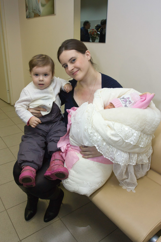 Я готовила Настеньку к рождению Ане с того момента, когда стал виден живот а он появился в этот раз очень быстро. Рассказывала ей что будет у нее сестрёнка, подружка, как будет им весело. Давала ей потрогать живот, поцеловать его, погладить…После рождения я попросила привезти Настю на выписку….чтобы она нас встретила и наконец-то уже и познакомилась с обещанным другом. Я вышла первая к родственникам…Настя меня сразу узнала…и с криками на всю выписную «мама! Мама!»…кинулась на меня….Несмотря на швы и все прелести послеродового периода…я её подхватила на руки и крепко поцеловала. Потом вынесли Анечку…я ей сразу показала её и сказала: «Вот, это твоя сестрёнка!». Настя внимательно посмотрела…но мне показалось, что на тот момент ее больше заинтересовали цветы, привезённые родителями. Далее фотосессия и поездка домой.