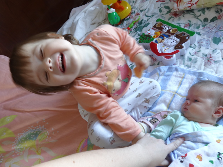 Что изменилось в жизни старшей - это ночной сон. До рождения Анечки - мы спали вместе последствия ГВ, теперь же я её только укладывала…и уходила к младшей исполнять материнский долг. Вместо меня с ней и по сей день спит мой муж. Она от этого не страдала…в какой-то момент ей это даже понравилось и она мне перед сном говорила «Мама, кыш» типа нам и с папой хорошо без тебя. Я даже немного ревновала к мужу... Я очень боялась ГВ…думала, как Настя к этому отнесётся….Но все прошло гладко…когда я кормила Анечку, давала Насте бутылку и мы все втроем лежали рядом…никто не страдал.