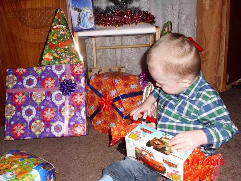 Отдых с погодкамиНовый год прошел тихо по семейному) Посидели с мужем под телевизор и пошли спать..Утром детям радость) В коробки от конфет мы спрятали мандарины и бананы и старшей купили мини набор киндера, она и этим объелась)