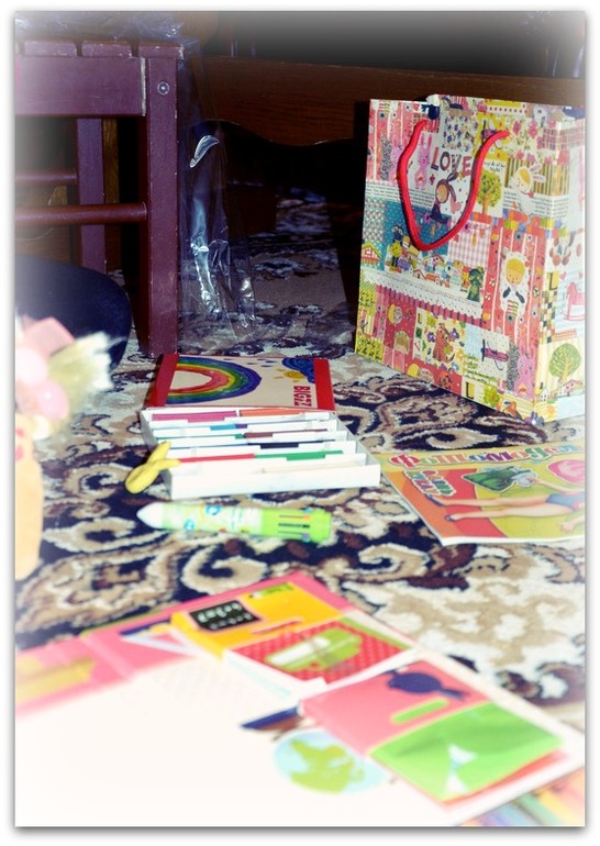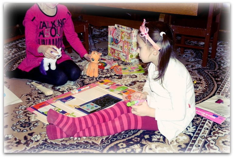 В качестве сюрприза, помимо вышеперечисленных подарков, были заготовлены небольшие, но такие, блин, зараза дорогие! фигурки мультяшных героев (Тигра и Микки-Маус) и большой набор "Играем в школу".
