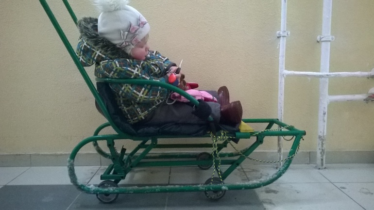 А! забыла санки! у нас это санки с колёсиками. Однажды выглянула в окно - снееега по подмышки, и радостно так, вприпрыжку поскакала на балкон за санками. дети вокруг них хоровод водят, повизгивают от восторга, сейчас мы каааак поедем! спустились мы, дети сели, едем, а снег свежий, рыхлый на голом асфальте лежит, бедолага-снег даже не думает санки держать, сразу сдаёт позиции асфальту. если короче, то через метров 100 встали мы как вкопанные или приклеенные к этому асфальту, толи лыжи не едут, нет, это из другой оперы, пожалуй. Но разве меня пугают неудачи! на следующий день мы опять попёрлись на санках, снег-то примялся! До сада доехали - это плюс, у меня даже варежки потные - это...ну тоже плюс, спорт утром - самое милое дело, детей чуть не вывалила из санок - минус, несколько раз чуть не вывалила! на каждом малейшем препятствии типа трещинки на асфальте! шла, нет, пёрлась и думала, зачем их придумали?! а когда от сада поехала с Ясей, поняла в чём фокус - в одном ребёнке, с одним саночки бежали, мчались и веса не имели.