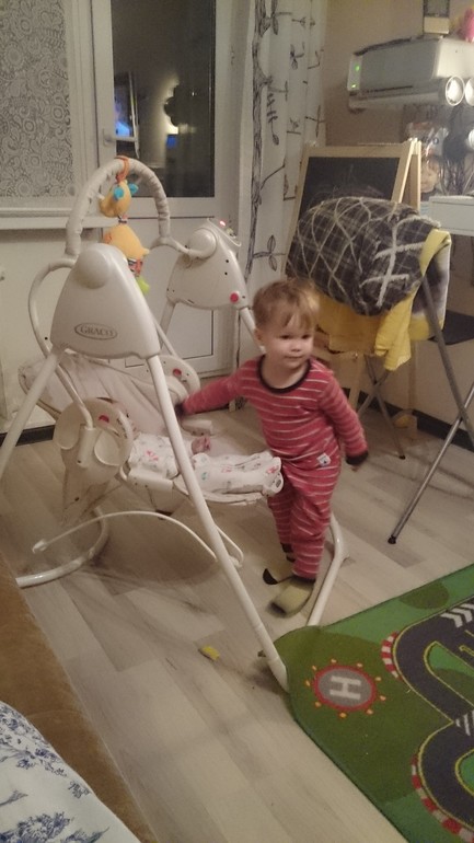 Сон. На ночной сон сын уходит в свою комнату. Это правило, которого мы стараемся придерживаться. Приучать начали примерно за месяц до Алискиного рождения. Сейчас он изредка прибегает к нам ночью или под утро. Если под утро и Антон уже уходит на работу, то мы его не трогаем - пусть поспит часок. Если это середина ночи, то Антон уносит его обратно в комнату, когда Даня засыпает. Спать с ним невозможно - вертится как юла. Доча спит у себя всю ночь ттт. Без ночных бдений. Мы редко ее укачиваем, засыпает сама в кроватке. Но иногда, конечно, на ручках засыпает. Дневной сон запланировать сложно. Я стараюсь укладывать старшего, и за полгода Алискиных она не спал днем всего пару раз. Обычно это происходит так: Алиса в качельках с игрушками, а я укладываю сына. Могу с ним договориться, что он будет спать и уйти еще до того, как заснет, или же дожидаюсь рядом с ним. Потом занимаюсь Алисой. Режим весь я подстраивала под старшего.