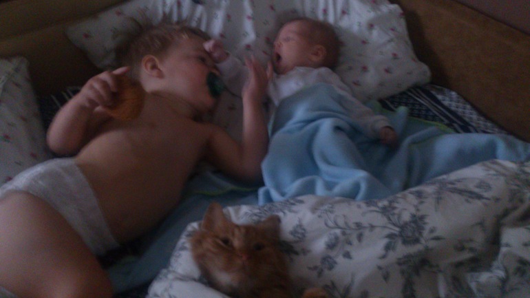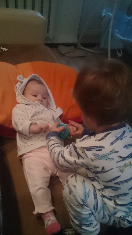Про тяжело. Первый месяц было тяжело. Но не так как я ожидала. Не физически, а морально, и не с младшей, а со старшим. Мне всегда говорили, что сын спокойный ребенок (это если сравнивать с нашими с мужем семьями), но доча оказалась еще спокойнее. В первый месяц спала и ела. Спала с нами в кровати правда, а к 2 месяцам, как и Даня раньше, перебралась в свою кровать. Так вот Даня дрался, не с сестрой, а со мной и только со мной. Весь первый месяц. Это было ужасно, конечно. Пару раз слезы наворачивались, но я понимала, что ему надо пережить этот стресс. И со временем все прошло. Сестру он очень любит, целует, играет, приносит соску, выбрасывает памперсы, сразу бежит рассказывать, если она шевелится или разговаривает в кроватке.