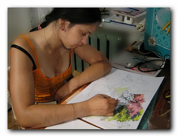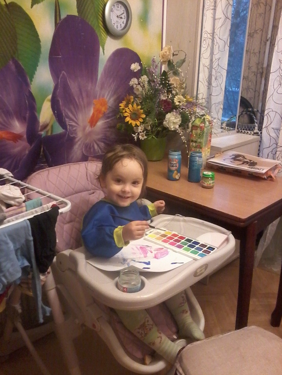 ( ну правда -это минут на 20 -30 и когда они спят. Потому, что Приходит Соня, начинает требовать кисточку, краски, листочек. причем детское ей не надо - ей профессиональные подавай ( с салона художника за Х000 р. ) !!! я ее на кухню увожу и показываю, что есть красочки новые! красивые! (и без Надика никуда. ей ТОЖЕ надо - сую ей что-нибудь. ))
