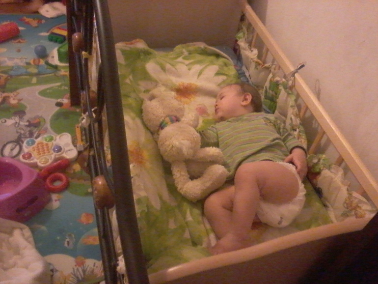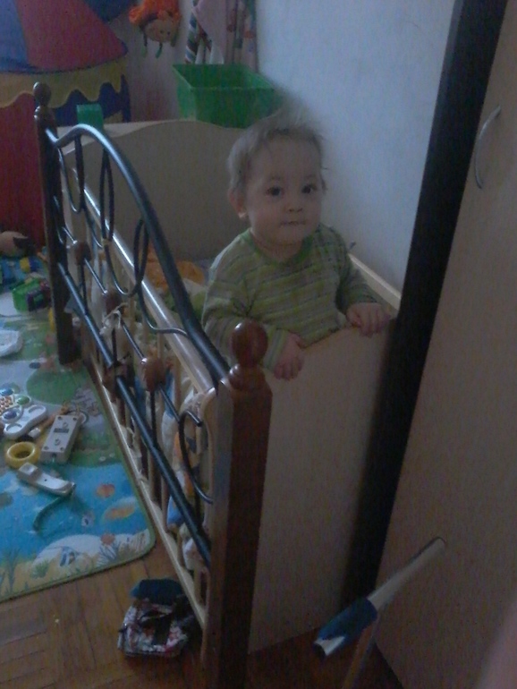 Ольга, ))) кроватка обычная — просто Надик с нее уже нырнула на пол и мы приставили спинку от нашей сломанной кровати))) стояла без дела) . а Коляска СамоФил ))) самоделкин)) BabyCare Jogger Cruze + автокресло на хомутах "бабочка"