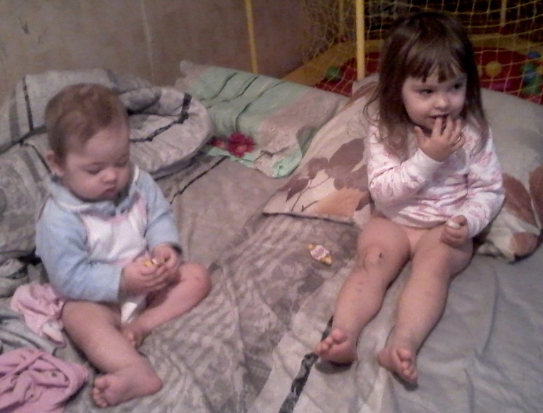 МУЖ УХОДИТ НА РАБОТУ где-то там - ночью-утром.. в 9 - 9:30 примерно просыпается Надюха. не шумит, мучает своего мягкого зайку и выбрасывает всю одежду из шкафа. копошится в ней, в общем до 10 я ее не слышу, потом она понимает, что хочет кушать и начинает хныкать. Естественно, что по первому пику просыпается моя Ванька-встанька-СОНЬКА ( всегда "на ушах", только дай - всё, что угодно, лишь бы не спать) . Радостная, соскакивает с кровати и залезает к Надюшке. Раньше я боялась, что она может ее толкнуть или еще что сделать, но сейчас, вроде, они стали играть по-доброму), поэтому я не сплю, но валяюсь и слушаю, как они хохочут вместе - обожаю этот позитив с утра!
