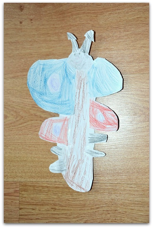 Люба - вообще выдумщица и затейница. Буквально из ничего она за минут 15 может сварганить что-то ошеломительное. )))) Вот эту бабочку из кусочков она придумала и воплотила идею в жизнь сама. Еще перед Новым годом. Взяла остатки бумаги, клей, ножницы. Все детали вырезались отдельно. ))))