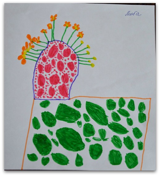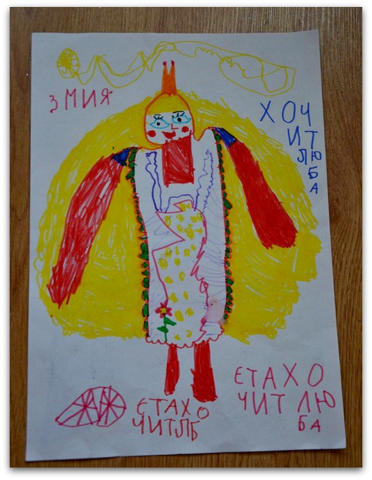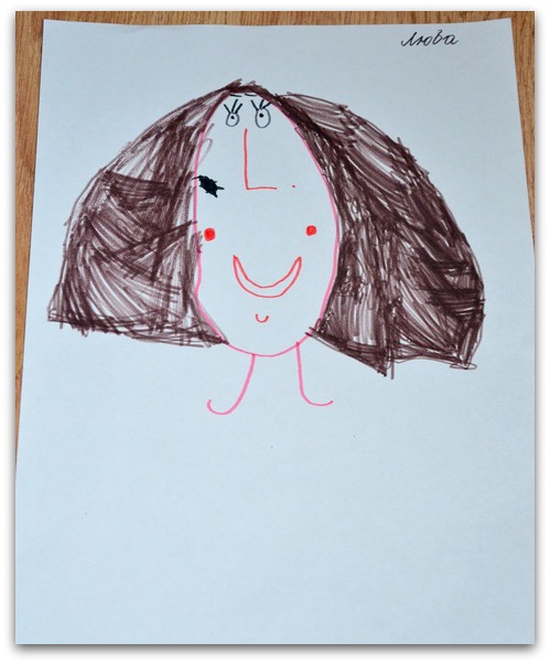 Ну а кто главный персонаж у детей? Правильно, мама. С каждым месяцем мама все больше становится похожа на себя. Вот тут Люба даже родимое пятно моё на левой щеке не забыла нарисовать. )))
