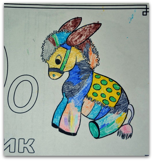А это раскрашенный Симой конечно же "радужный" ослик.
