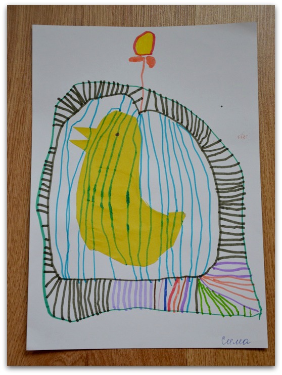 Это произведение из сада. Мне картинка очень нравится по задумке, и цветовые сочетания очень приятные. )))