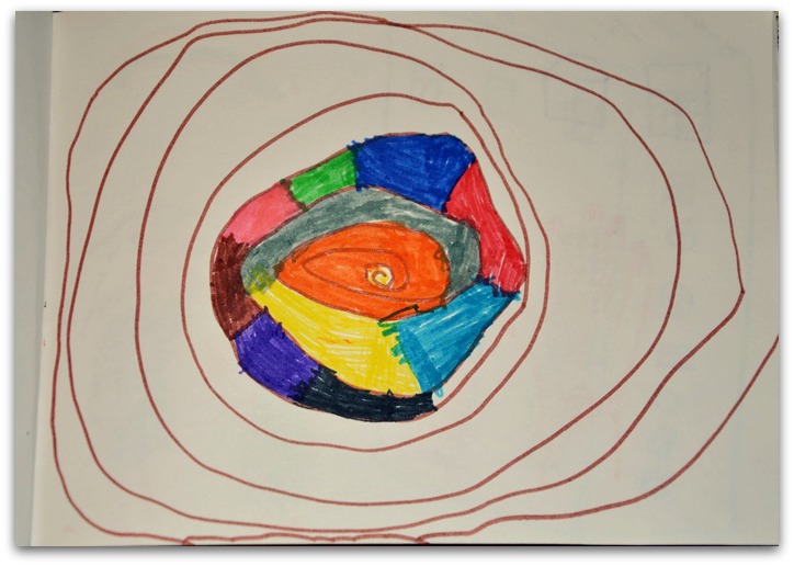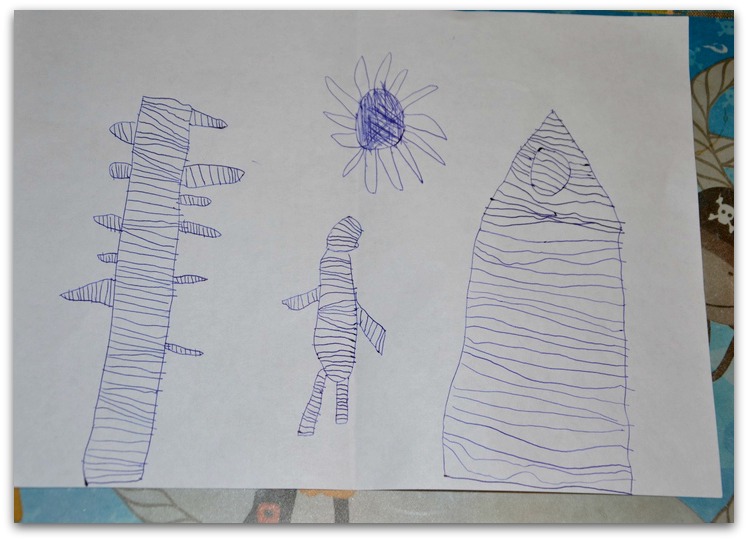 Вчера пришлось на час Симу взять на работу. Оставила ее в кабинете, снабдив ручкой и листочком. Неслась обратно в предвкушении - что-то там нарисовала дочь? Увидела - оторопела. Сима рисовала главные вещи в жизни человека (дерево, дом, солнце и сам человек) и штриховала. Тщательно.