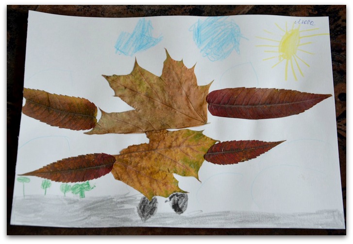 Вот, например, результаты творческой недели в саду у Любы. Несложно догадаться, что тема всю неделю была - транспорт. Тут тебе и автомобиль, и паровозик с глазками на всех его частях, и даже машина будущего, выложенная из осенних листиков.