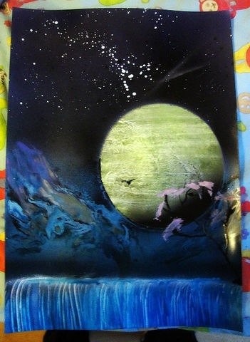Наши детки (развитие, успехи, фото)Вот такие картины рисует мой старший сын)Это так сказать его хобби )Которое радует нас )Рисует баллончиками.Одаривая всех своими работами ))