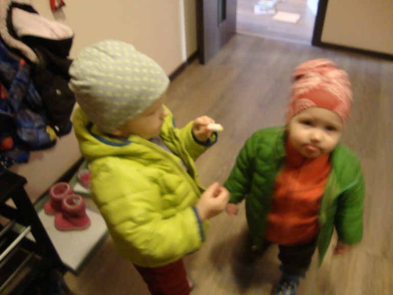 Обычно весь их сон я посвящаю английскому, но в этот день позвонила подруга, с которой давно не разговаривали. И мы еще не успели все обсудить, как приходит проснувшаяся Женя. А следом и Маня меня зовет.