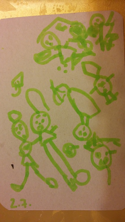 БолталкаВот наконец У Насти (2.7 лет) стали получаться рисунки отдаленно напоминающие реальность.